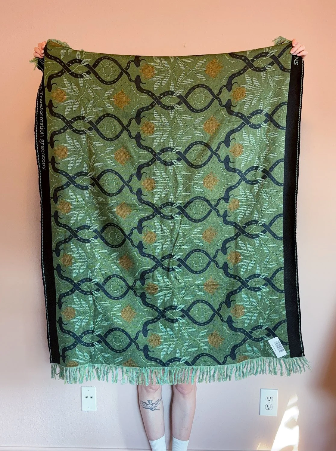 26” x 26” matte crepe scarf. A one-off sample I had made. Design is about 75% see-thru on the back side.
